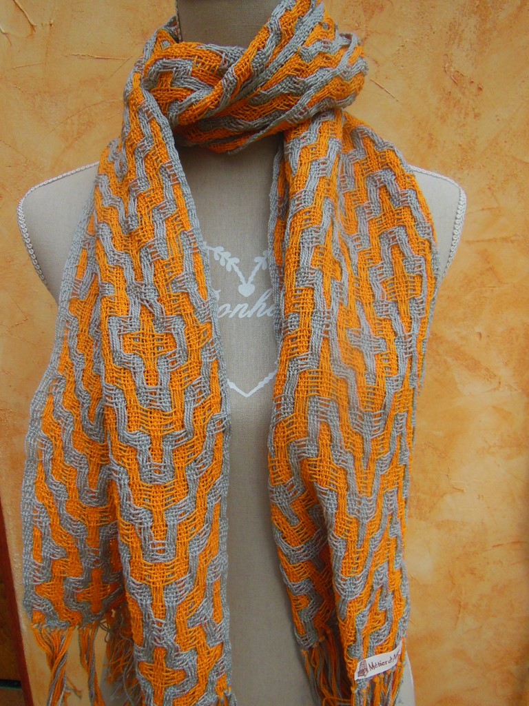 Le coton non mercerisé, aux couleurs naturelles et à la fibre moins lisse confère plus de légèreté aux écharpes.