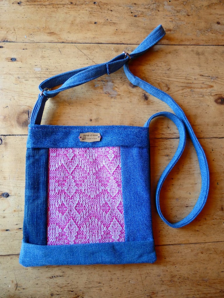 Ce sac est constitué d'un côté tissé en t-shirts recyclés, l'arrière et la sangle sont en jeans recyclé.