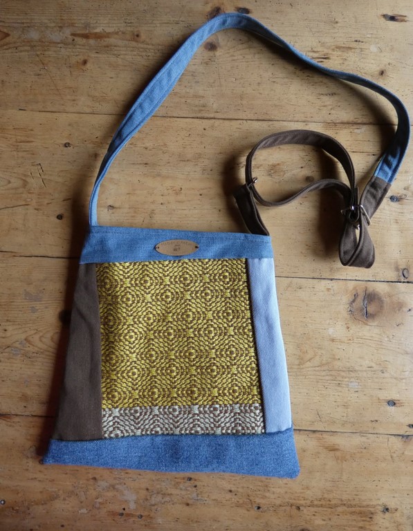 La face avant est tissée en coton, le dos et la sangle sont en jeans ou tissus recyclés. Chacune des faces a été renforcée avec de la vlieseline thermocollée et cousue ce qui confère aux sacs tenue et souplesse. Ils sont doublés avec du coton.