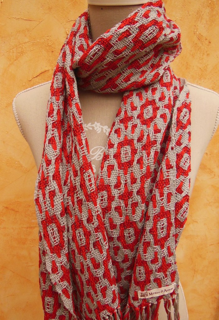 Le coton non mercerisé, aux couleurs naturelles et à la fibre moins lisse confère plus de légèreté aux écharpes.