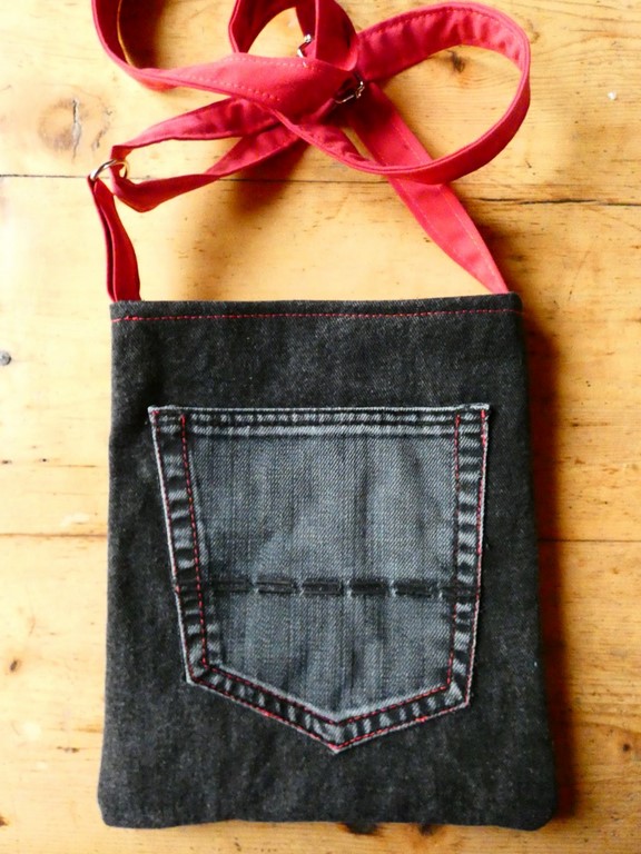 Ce sac est constitué d'un côté tissé en t-shirts recyclés, l'arrière et la sangle sont en jeans recyclé.