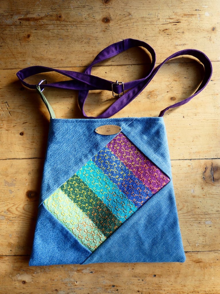 Ce sac est constitué d'un côté tissé en coton et de jeans recyclé, l'arrière et la sangle sont aussi en jeans recyclé.